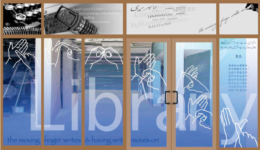 This 'Transliterate' design was created before the term gained its more popular use, it combines several languages, and poetry from different languages with literary forms other than the printed page. A collaborative artwork by Annie Lovejoy and Mac Dunlop, © 2005