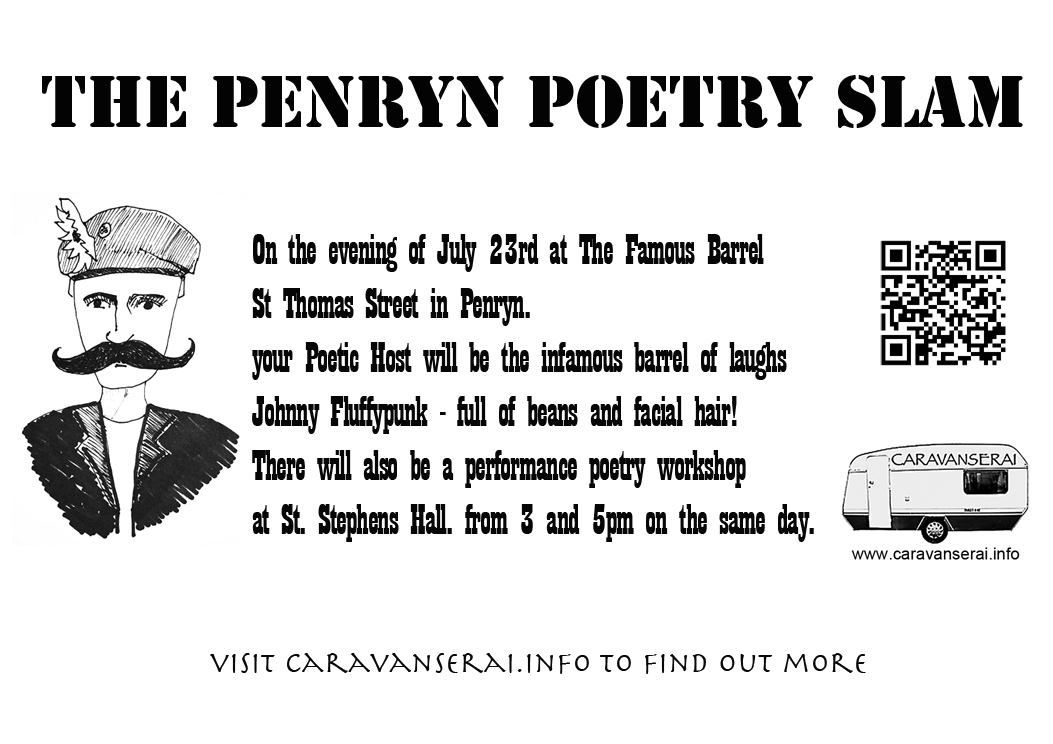 There will also be a performance poetry workshop held between 3 and 5pm on Tuesday July 23rd – at Penryn Town Hall.